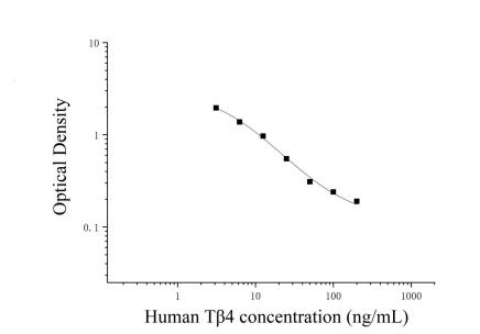 本试剂盒采用竞争法酶联免疫吸附试验( ELISA) 。往预先包被有人胸腺素β4(Tβ4)抗体的微孔中 ,依次加入样本、标准品、HRP标记的抗原 , 中间经过温育和洗涤 ,用底物TMB显色 ,TMB在过氧化物酶(HRP)的催化下转化成 蓝色 ,并在酸的作用下转化成最终的黄色。颜色的深浅和样本中的人胸腺素 β4(Tβ4)呈负相关。用酶标仪在450nm波长下测定吸光度( OD值) ,计算样 本浓度。